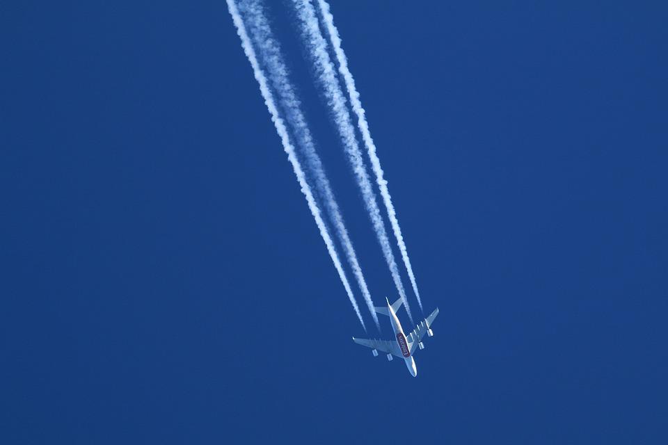 Kondenzacijski trag letenja nastao iz ispušnih plinova. Izvor www.pixabay.