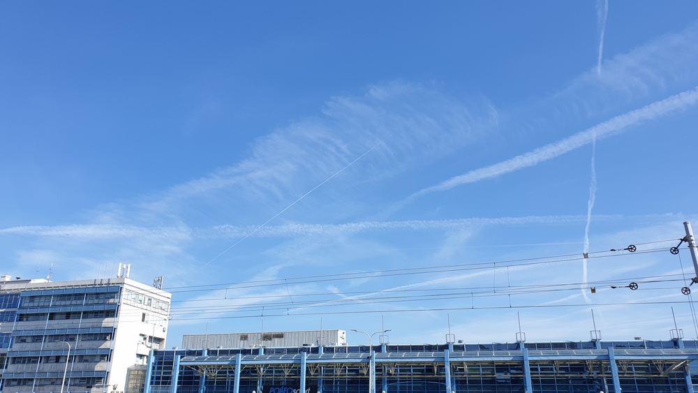 Obje vrste kondenzacijskih tragova letenja, rijetko se viđaju zajedno. Izvor https://www.flickr.com/photos/flyforfun/
